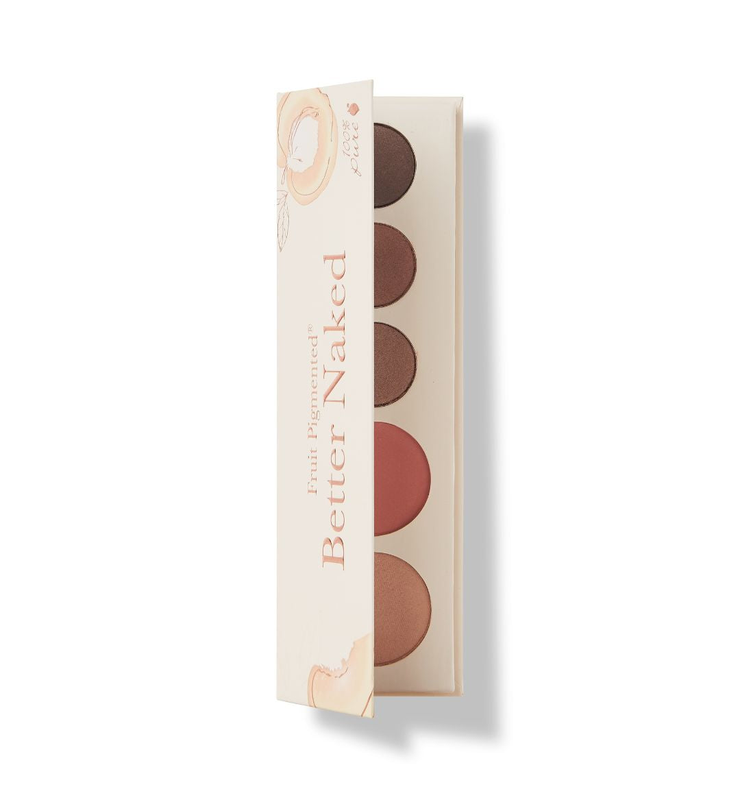 Our Better Naked Palette amplifies rosy, taupe, and beige toned nudes alongside shimmery, gilded metallics. Pigmented from antioxidant rich fruits, vegetables, tea, and other skin-beneficial plants. This palette features 3 eyeshadows, a blush, and a highlighter. Each signature shade is colored from vitamin rich fruit and vegetable pigments – not synthetic dyes.