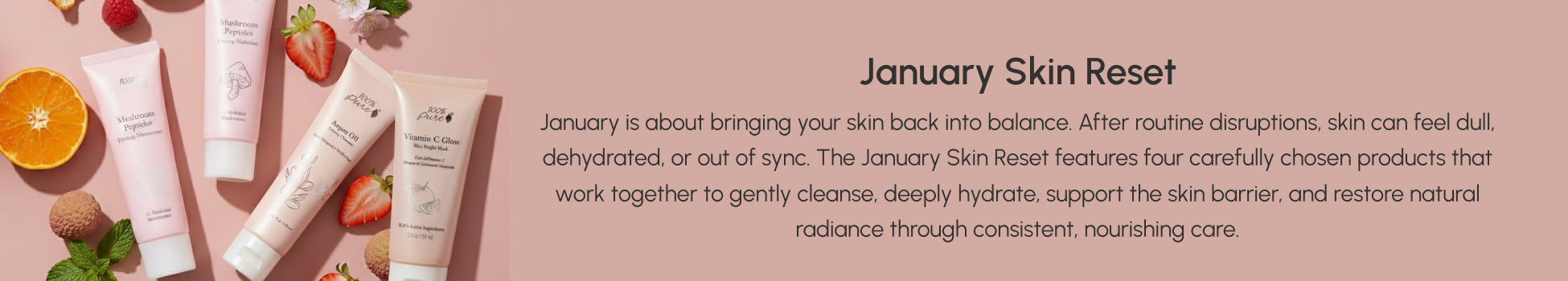 January is about bringing your skin back into balance. After routine disruptions, skin can feel dull, dehydrated, or out of sync. The January Skin Reset features four carefully chosen products that work together to gently cleanse, deeply hydrate, support the skin barrier, and restore natural radiance through consistent, nourishing care.